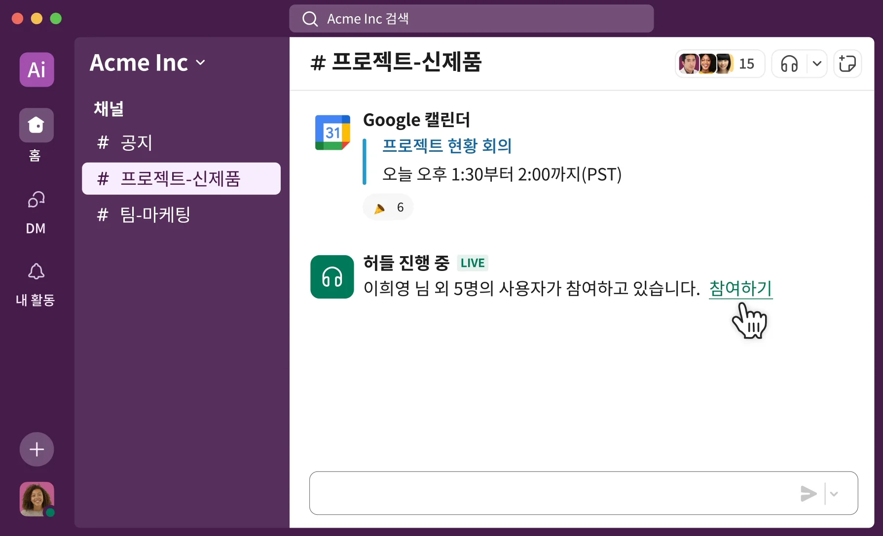 구글 드라이브, 구글 캘린더, 줌, 노션 등 다양한 앱과 연동해 효율성을 높일 수 있어요.