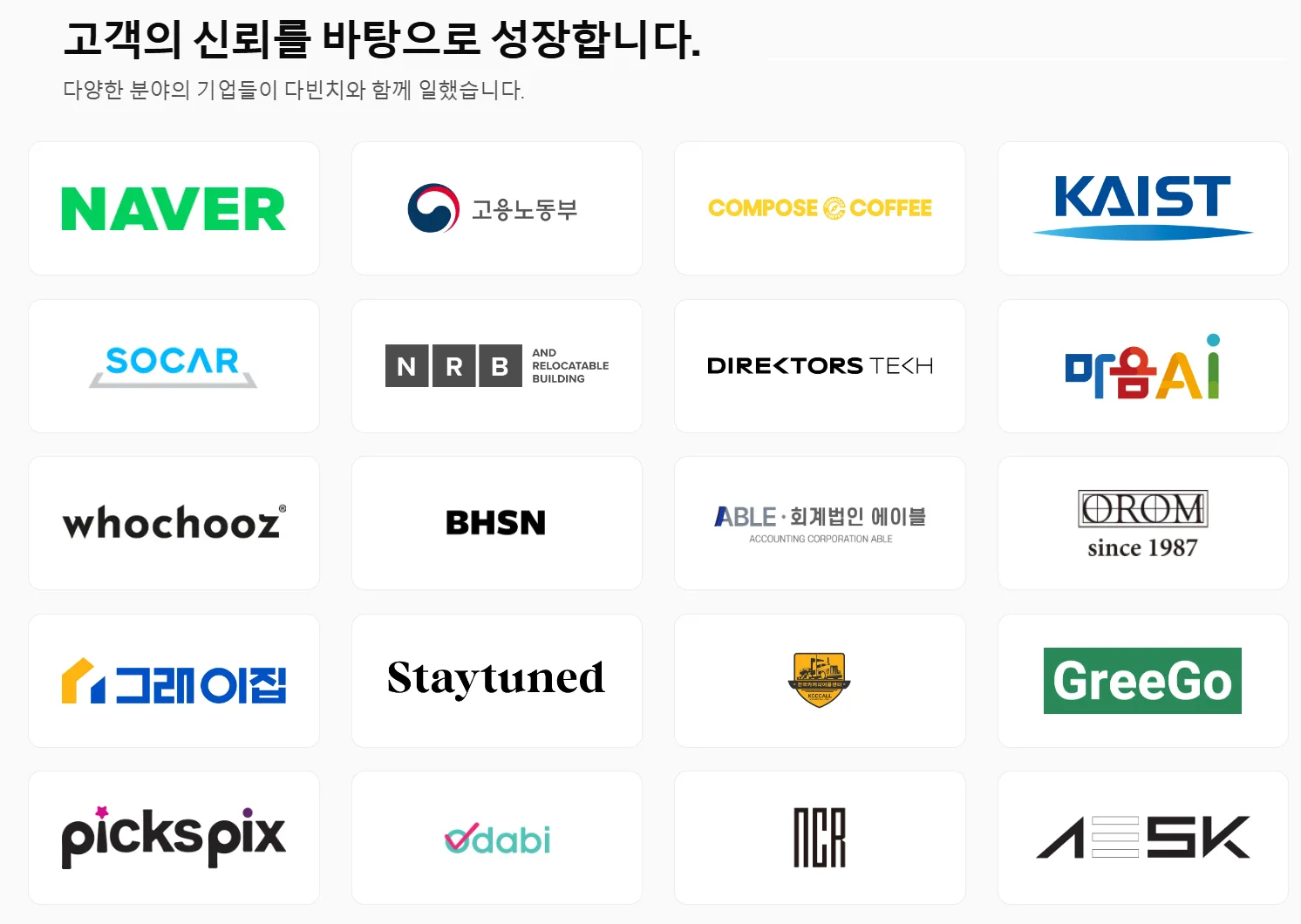 팽동은: 네, 처음엔 저도 저희가 정말 잘할 수 있는지 확인해야 하니 “몇백만 원만 주세요”라고 싼값에 했어요. 근데 성공 사례가 쌓이니 연락이 엄청 많이 왔어요. 그러다 1년 반 동안 점점 고객사 규모가 커졌고, 이제는 쏘카, 네이버, 고용노동부, 컴포즈커피 같은 곳도 저희에게 의뢰를 주기 시작했습니다. 그러면서 비용도 억 단위로 올라갔죠.